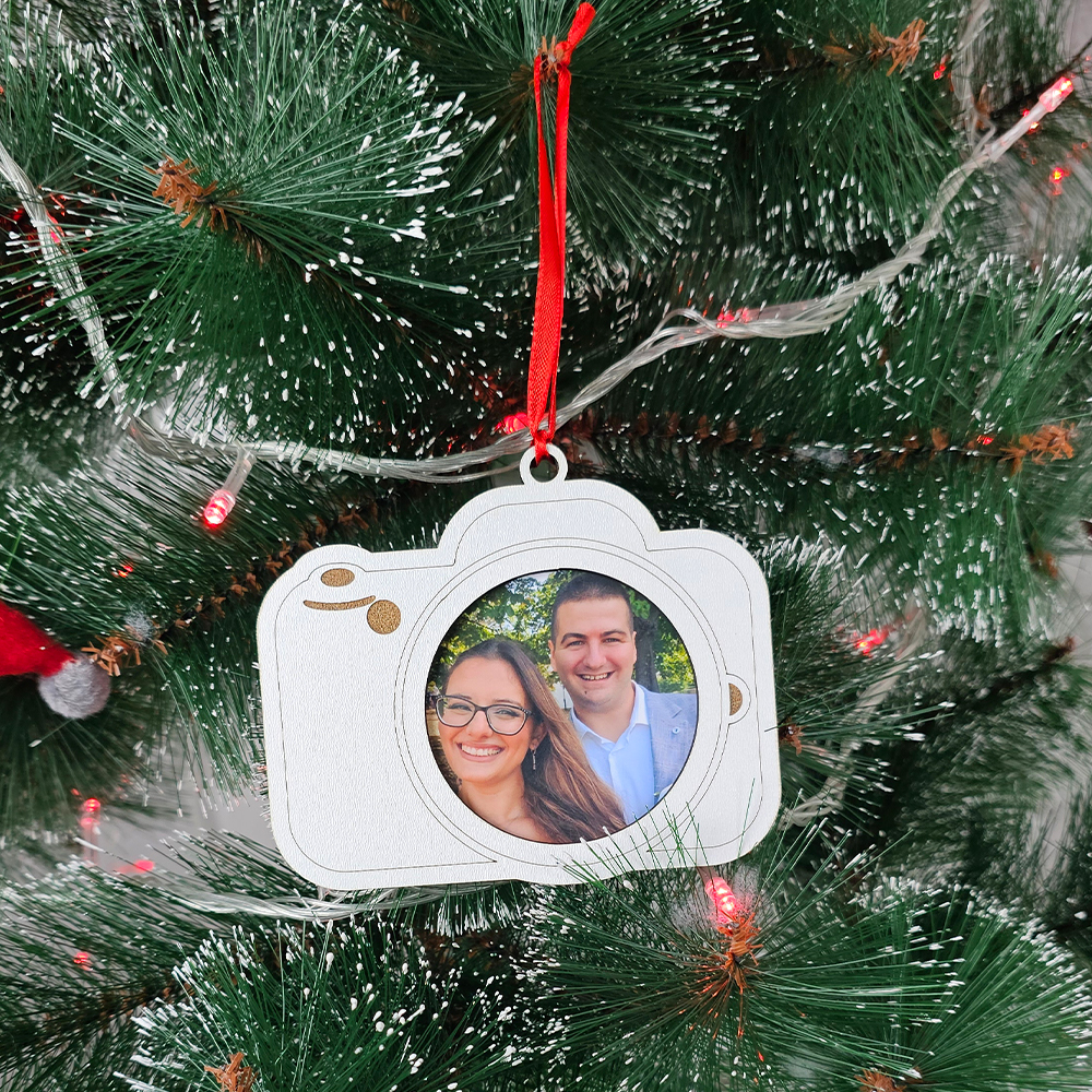 Personalizovani ukras za jelku u obliku fotoaparata sa vašom omiljenom slikom! Idealno za unikatne novogodišnje trenutke i kao poklon za vaše najdraže.